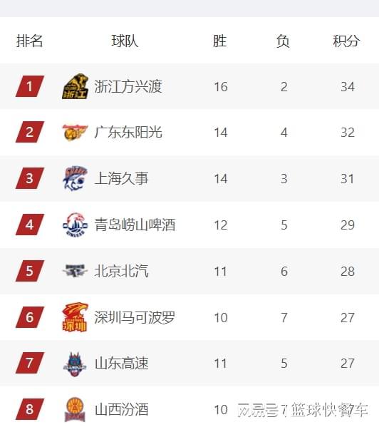 附:CBA积分榜最新排名
